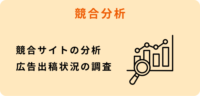 競合分析また、他社様での成功事例や最新の傾向を活かして御社ならではの勝ち筋を一緒に考えさせていただきます。
